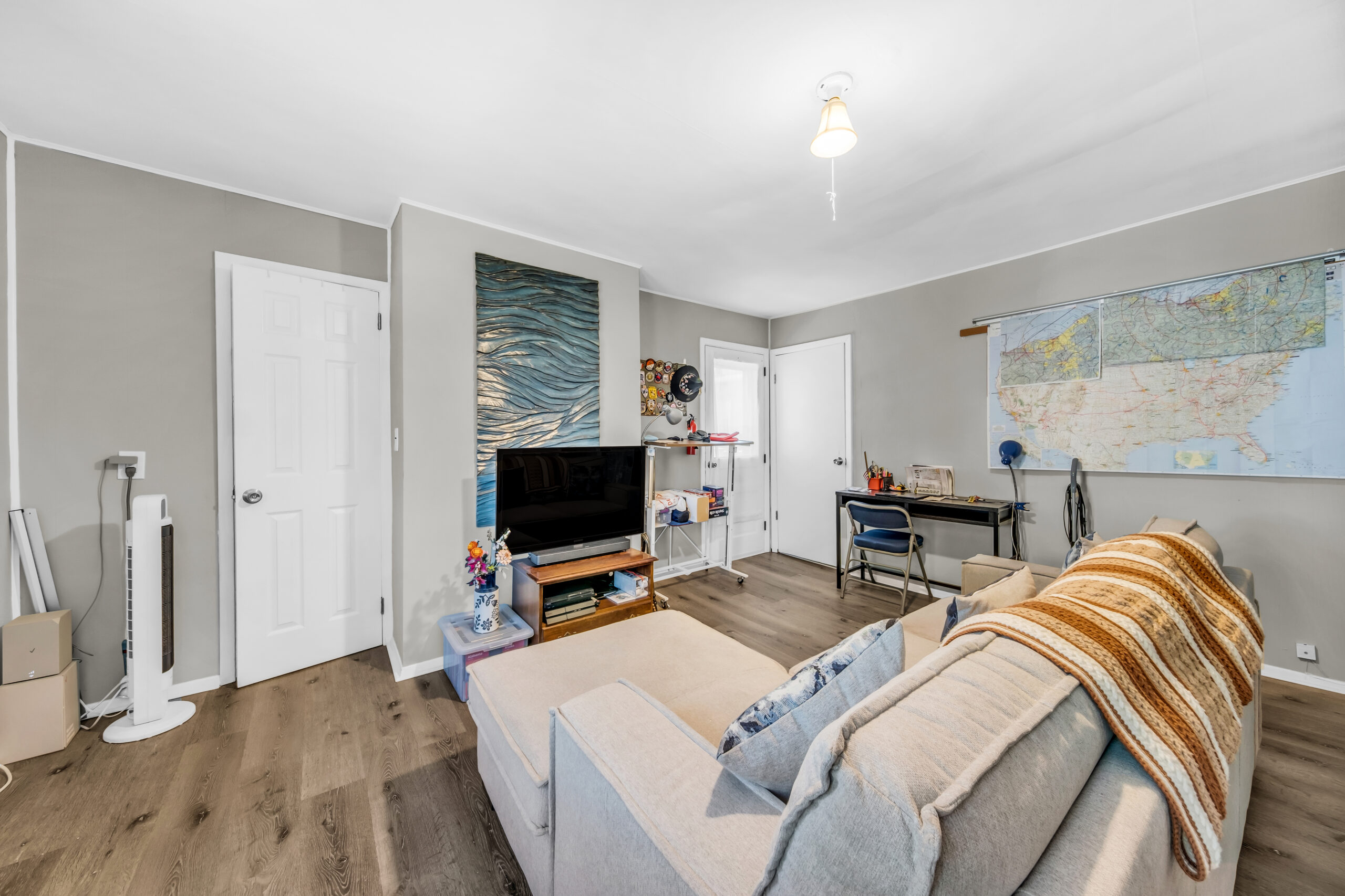It has three units: Two 3 bedrooms/1 bathroom units and One 4 bedrooms/2 bathroom unit.